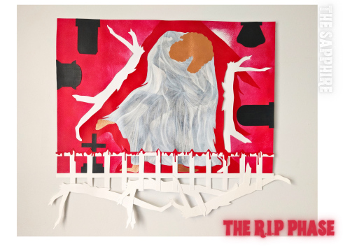 The R.I.P Phase. An Anagram for The Sapphire, Hope River, 2024, Acrylic, paper, and print on paper, [size tbc]